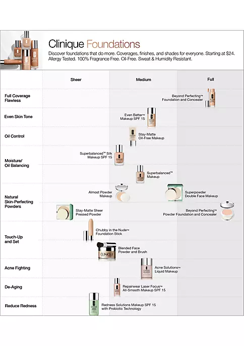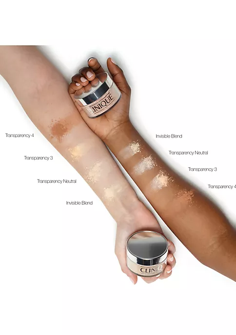 For the most flawless look, use Clinique’s Powder Rubdown technique: Pour powder into palm of hand, coat fingertips with powder then gently pat and smooth fingertips over skin. Brush off excess.