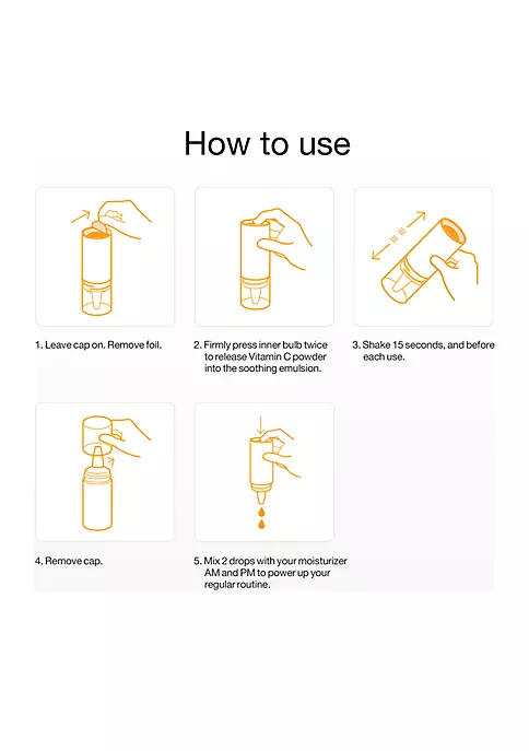 – Firmly press inner bulb twice to release Vitamin C powder into the soothing emulsion.