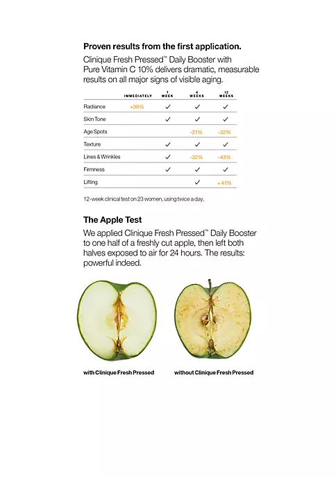 Unique de-aging Booster harnesses the full power of pure, fresh Vitamin C at our highest concentration to brighten, even and retexturize skin.