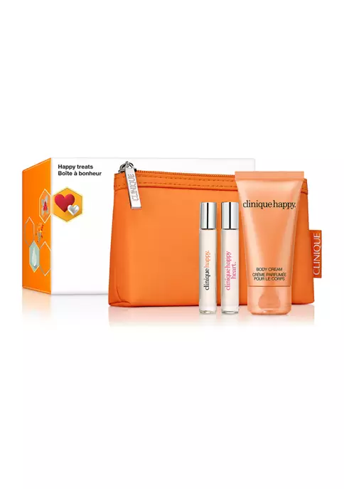 β’Clinique Happyβ’ interplays vibrant notes of grapefruit and bergamot with sensual Hawaiian wedding flower and spring mimosa for a scent that sparkles with sheer delight.