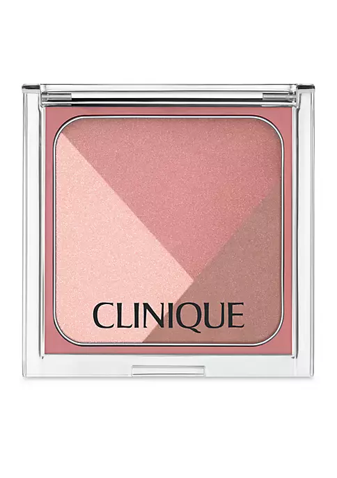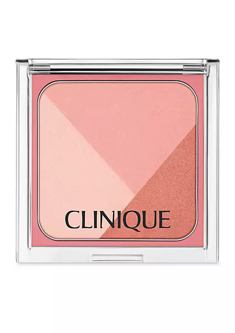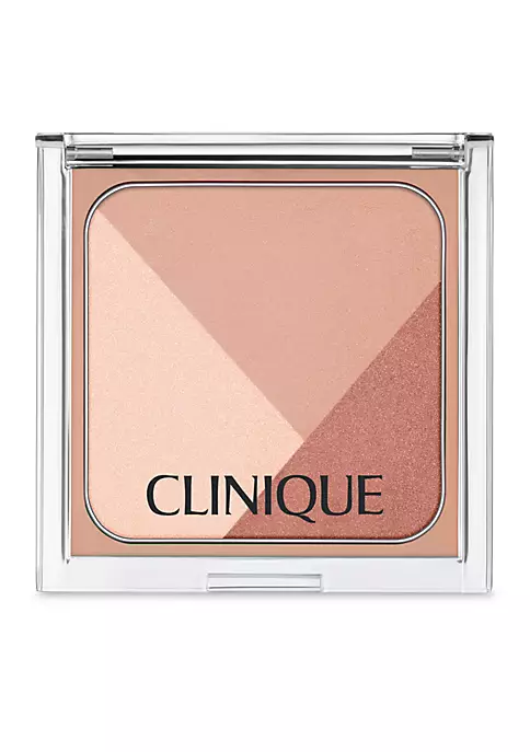 Use Clinique’s Blush Brush to apply mid-toned shade as blush, deep-toned shade to contour, lightest shade to highlight. For a quick, easy glow swirl brush over entire palette and dust over apples of cheeks.