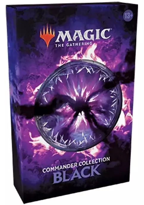 Commander Collection: Black is a boxed set of eight reprinted cards themed to one color and what it does best?in this case black, the color of ruthlessness and opportunity. These cards have been selected to showcase iconic black strategies in Commander, and each one has been given brand-new art with loads of references to popular legendary characters. They’ll be right at home in your favorite black deck alongside their legendary counterparts! There are two versions of Commander Collection: Black?a regular and a premium edition. All WPN stores will be able to order the regular version, which contains all eight cards in non-foil. The premium edition will be exclusive to WPN Premium stores and will contain all eight cards in gorgeous traditional foil!