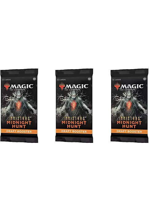 - The Innistrad Midnight Hunt Draft Booster Pack includes 15 cards.
