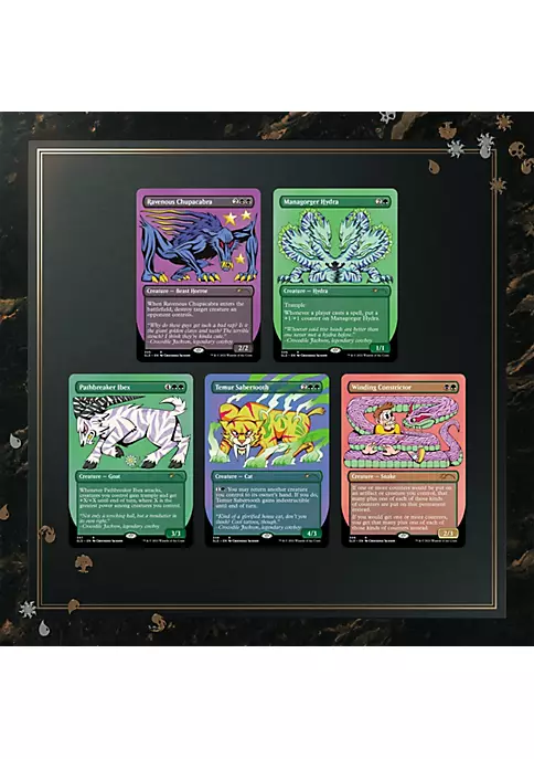 - Contents: 1x Borderless Ravenous Chupacabra,  1x Borderless Managorger Hydra,  1x Borderless Pathbreaker Ibex,  1x Borderless Temur Sabertooth,  1x Borderless Winding Constrictor