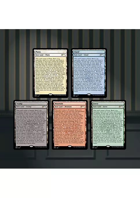 - CONTENTS: 1x Full-Text Plains, 1x Full-Text Island, 1x Full-Text Swamp, 1x Full-Text Mountain, 1x Full-Text Forest