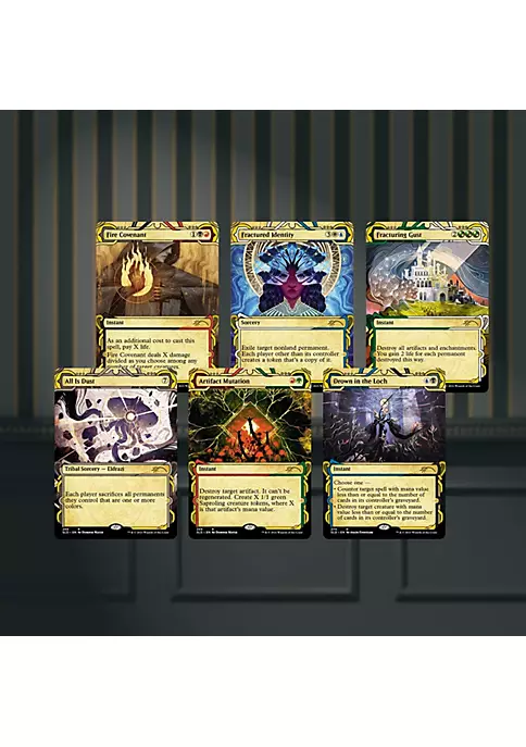 - CONTENTS: 1x Showcase All Is Dust, 1x Showcase Artifact Mutation, 1x Showcase Drown in the Loch, 1x Showcase Fire Covenant, 1x Showcase Fractured Identity, 1x Showcase Fracturing Gust