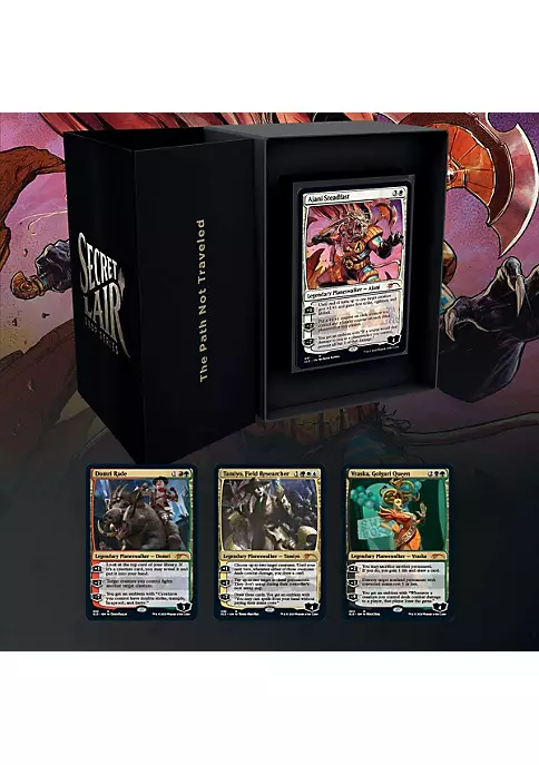 Magic: The Gathering TCG – Secret Lair Drop – The Path Not Traveled is a collection of 4 Foil Alt-Art Full-Art cards: Ajani Steadfast; DomriΓ’β¬Β―Rade; Tamiyo, Field Researcher; and Vraska,Γ’β¬Β―GolgariΓ’β¬Β―Queen.