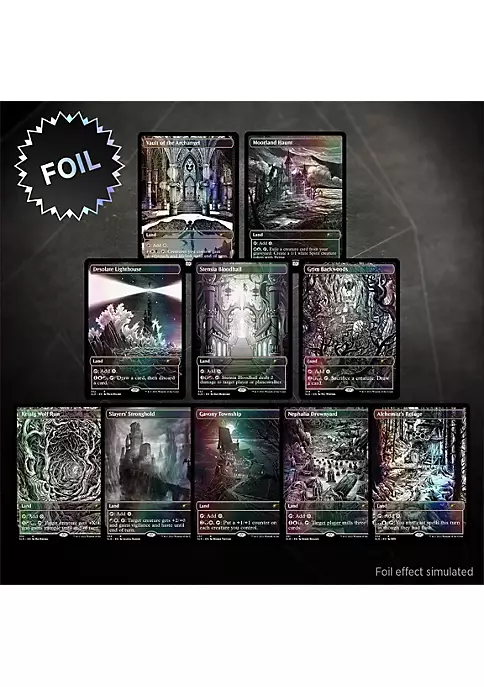 - 1x Foil Showcase Moorland Haunt, 1x Foil Showcase Vault of the Archangel, 1x Foil ShowcaseรขโฌยฏNephaliaรขโฌยฏDrownyard, 1x Foil Showcase Desolate Lighthouse, 1x Foil ShowcaseรขโฌยฏStensiaรขโฌยฏBloodhall, 1x Foil Showcase Grim Backwoods, 1x Foil ShowcaseรขโฌยฏKessigรขโฌยฏWolf Run, 1x Foil Showcase Slayerรขโฌโขs Stronghold, 1x Foil ShowcaseรขโฌยฏGavonyรขโฌยฏTownship, 1x Foil Showcase Alchemistรขโฌโขs Refuge