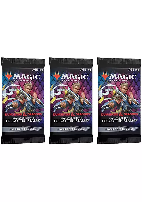 - The Adventures in the Forgotten Realms Set Booster Pack includes 12 cards.